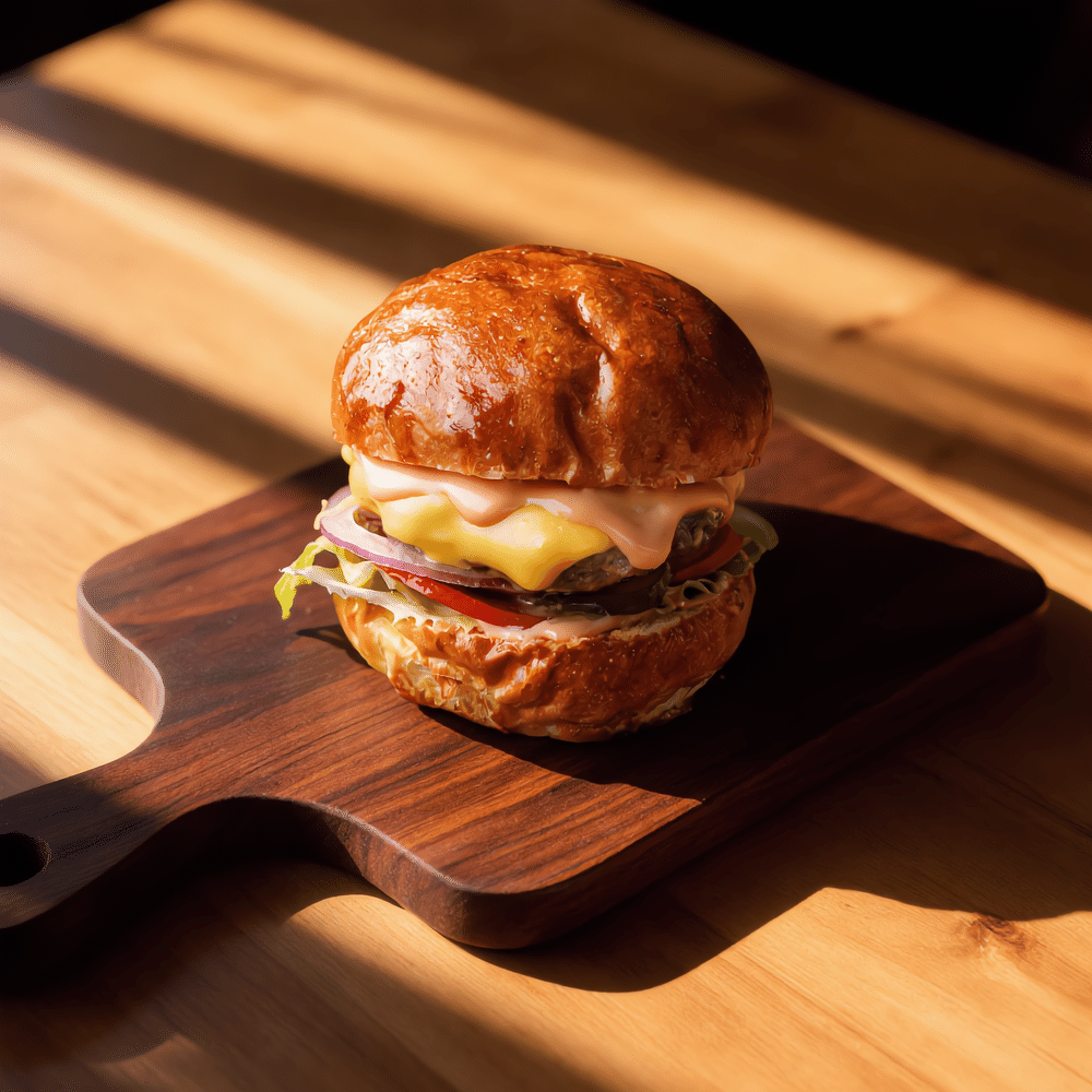 Мраморная говядина, чеддер, огурцы, крафтовая картофельная булка, соус коктейль-трюфель
