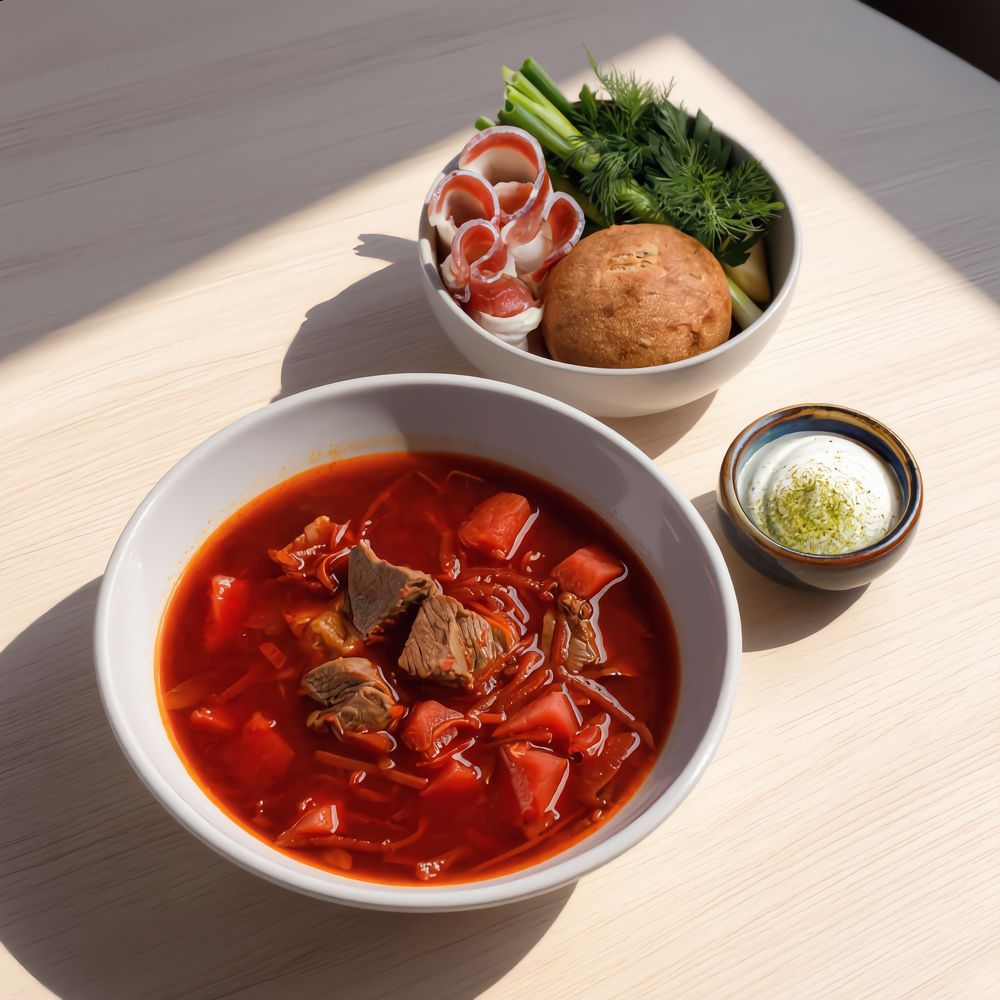 Цельнозерновая булочка, сало, зелень, чеснок, сметана
